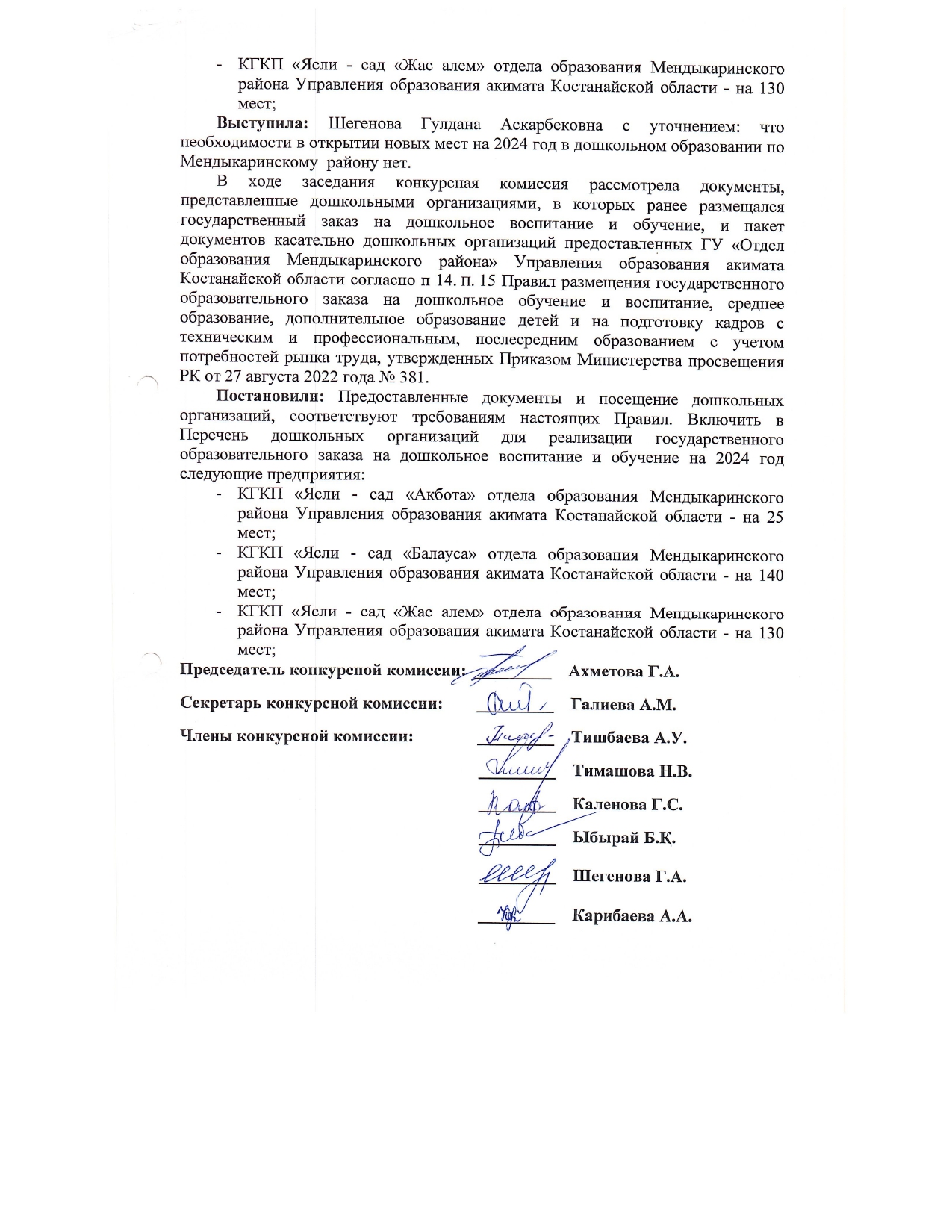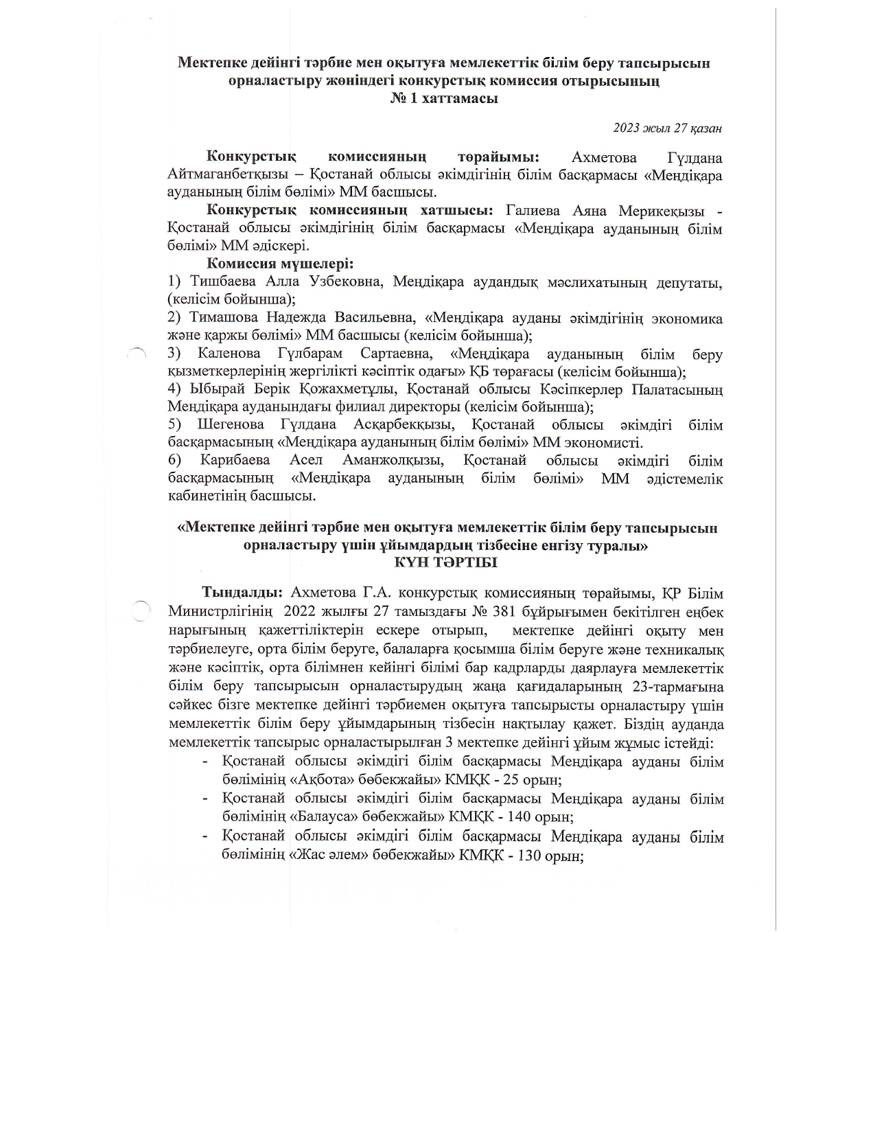 Протокол по размещению образовательного заказа на дошкольное воспитание и обучение 2023